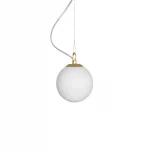 Inspirada nas clássicas luminárias art nouveau com bola de vidro das ruas européias, o lustre Amora é feito em latão e com difusor de vidro soprado, um charme!