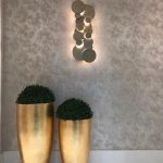 Criamos nossas peças utilizando os melhores materiais que o mercado tem a oferecer, nesta arandela produzida com estrutura em alumínio e folhas, acabamento na pintura feita em eletrostática.