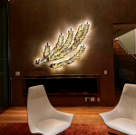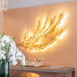 Criamos nossas peças utilizando os melhores materiais que o mercado tem a oferecer. A estrutura da arandela é de alumínio com folhas, acabamento em pintura ouro.