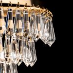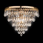 Arandela feita em aço inox com acabamento em pintura de ouro polido e cristais na lapidação pirulito incolor.