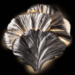 Feita em folhas de alumínio esculpidas a mão possui um acabamento em folha italiana nas cores ouro e prata.