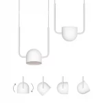 Um pendente funcional e articulável, delicado, gráfico e lúdico. Seu fio em tecido rayon traz não somente sustentação, mas também forma e fluidez. Por ter luz suave e cúpula direcionável esse lustre fica perfeito em composições com diversas peças que geram uma variedade de jogos de luzes.