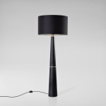 Luminária de piso com linguagem casual e sofisticada, baju possui base em madeira ebanizada e cúpula em linho preto. oferece uma iluminação difusa e confortável, adequada a diversos tipos de ambientes. na versão dimerizável, permite o controle da intensidade da luz, sem perder a eficiência.