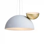 Beijo proporciona simultaneamente dois pontos de iluminação, uma voltada para o ambiente e outra para o teto. As cúpulas metálicas juntadas delicadamente em direções opostas evocam o toque suave de um beijo. Ideal para ser colocado na sala em uma criativa composição. O pendente Beijo vai dar um ar bem inusitado e bem divertido à sua sala.