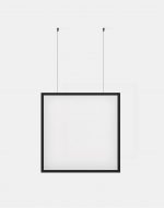Luminária pendente com iluminação difusa para forros , suspensa por cabos elétricos. Estrutura em alumínio e difusor em acrílico jateado. Fonte 12VDC/25W bivolt remoto incluso.