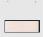 Luminária pendente com iluminação difusa para forros , suspensa por cabos elétricos. Estrutura em alumínio e difusor em acrílico jateado. Fonte 12VDC/25W bivolt remoto incluso.