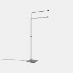 Luminária de piso para iluminação direcionada. Corpo iluminante em alumínio e base em aço. Difusor em poliacetal.