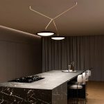 Suas luminárias dispostas em forma de pratos lembram o desenho das antigas balanças – aqui equilibrando luz difusa, confortável e eficiente com os modos de vida contemporâneo.