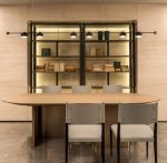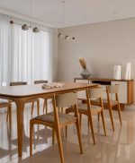 A beleza da madeira extraída de forma sustentável, aparece com sutileza, traz uma característica mais orgânica para as peças e o torneado arredondado da madeira imprime um caráter modernista.