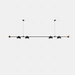 Luminária pendente para iluminação difusa. Corpo em aço e alumínio, com difusores esféricos em poliacetal. Canoplas na mesma cor de acabamento do produto. Refletores com acabamento padrão interno em branco. As peças em madeira podem apresentar variação de tonalidade.