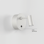 Com desenho discreto e módulo led para iluminação pontual, a arandela possibilita o movimento do facho em 20° e possui opções de base de sobrepor ou embutir.