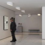 Atua em espaços arquitetônicos com luz geral, homogênea e eficiente. Sozinha, acentua sua presença imponente.