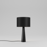 Luminária de mesa com linguagem casual e sofisticada, mini baju possui base em madeira ebanizada e cúpula em linho preto. oferece uma iluminação difusa e confortável, adequada a diversos tipos de ambientes.