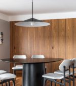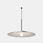Luminária pendente para iluminação direcionada. Corpo em alumínio suspenso por cabo de aço.