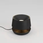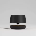 Nord é uma luminária de mesa inspirada no design nórdico. sua luz difusa e seus traços precisos trazem leveza e aconchego a ambientes como salas de estar e quartos. a versão black tem base em madeira maciça ebanizada e cúpula em tecido preto, possui sistema dimmer e acabamento em latão ou alumínio na cor preto fosco.