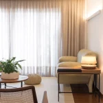 Nord é uma luminária de mesa inspirada no design nórdico. sua luz difusa e seus traços precisos trazem leveza e aconchego a ambientes como salas de estar e quartos. com base em madeira brasileira maciça e cúpula em tecido cru, possui sistema dimmer e acabamento em latão ou alumínio na cor cinza areia. *fotos: acabamento em alumínio na cor cinza areia.