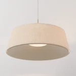 Luminária pendente inspirada no design nórdico. com desenho preciso, possui cúpula em linho e traz aconchego a ambientes como salas de jantar e quartos através de sua luz difusa. propõe iluminação direta e indireta com excelente conforto visual