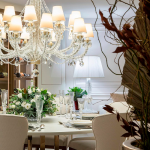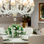 Criamos nossas peças utilizando os melhores materiais que o mercado tem a oferecer. Pendente clássico em aço carbono em pintura com cristais tchecos, cúpula em tecido liso bege e suspenso por cordão de viscose.
