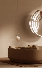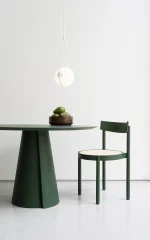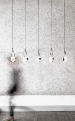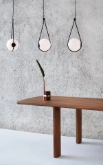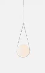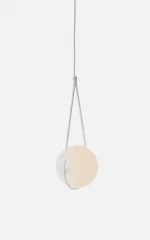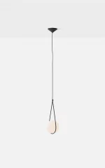 A luminária pendente Corda tem o cabo de energia como ponto de partida do projeto. A peça explora o máximo da simplicidade das formas e levanta conceitos abstratos como a sensação da gravidade presente na composição do objeto. Sua fina estrutura de metal, que contorna a esfera de vidro soprado, sugere uma continuação do cabo e foi desenhada de forma a parecer que esfera está agindo sobre a estrutura.