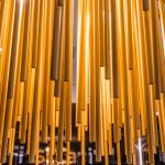Criamos nossas peças utilizando os melhores materiais que o mercado tem a oferecer, neste lustre utilizamos a pintura na cor ouro em uma estrutura de alumínio e hastes de vidro maciço.