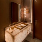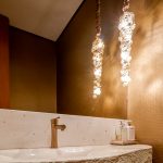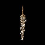 Criamos nossas peças utilizando os melhores materiais que o mercado tem a oferecer, neste lustre utilizamos a pintura na cor ouro em uma estrutura de alumínio e hastes de vidro maciço