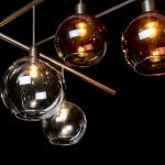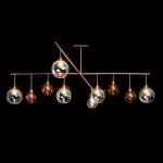 Criamos nossas peças utilizando os melhores materiais que o mercado tem a oferecer. Pendente moderno com acabamento em pintura na cor marrom cortem, possui globos de vidro incolor e tingidos na cor ametista, com estrutura em aço inox.