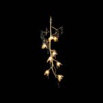 Criamos nossas peças utilizando os melhores materiais que o mercado tem a oferecer, neste pendente utilizamos a pintura na cor ouro em uma estrutura galvanizada e flores de tela.