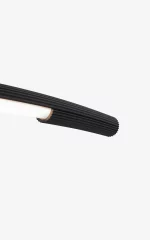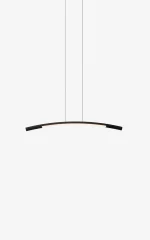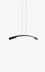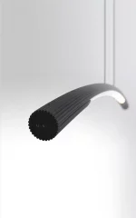 A Luminária Palo vem da vontade de criar uma fonte pendente, que pudesse dar conforto à mesa de jantar. A partir da horizontalidade da mesa, ela surge de um traço compatível e único, como uma pincelada suspensa. Algo leve e fluido, quase flutuante. A conexão com o teto se dá no centro da peça, o que faz com que as pontas caiam. Tal curva expressa uma maleabilidade vegetal, como se um bambu inspirasse a estrutura. Seu grande diferencial, que acaba por imprimir maior naturalidade à peça, é a textura. O metal é delicadamente rugoso, resultado de uma técnica de extrusão em que o calor e a ação alteram o alumínio.
