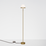 Uma releitura descontraída e delicada dos tradicionais abajures, a luminária de piso piccolo f possui estrutura em latão e cúpula em vidro opalino, que proporciona uma luz difusa e aconchegante.