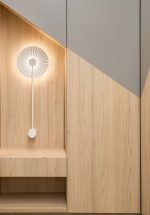 Corpos leves em alumínio acolhem o difusor de luz. Algumas das peças que fazem parte da coleção funcionam como módulos lineares e geométricos. A estrutura do pendente, por exemplo, permite disposições verticais e horizontais em diferentes alturas, criando combinações tridimensionais infinitas.