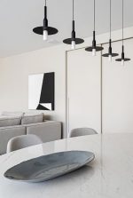 É uma peça única, mas que pode ser utilizada em série. Com uma linguagem estética neutra, ela foi pensada para apenas oferecer um discreto ponto de luz.