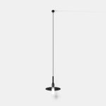 Luminária pendente de iluminação difusa. Corpo em alumínio e difusor em poliacetal, suspensa por cabo elétrico. Canopla no mesmo acabamento do produto.