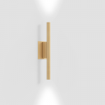 Arandela em latão, com dois fachos – direto e indireto – podendo ser usada individualmente ou em composição. ideal para uma iluminação suave e pontual.
