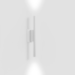 Arandela em alumínio, com dois fachos – direto e indireto – podendo ser usada individualmente ou em composição. ideal para uma iluminação suave e pontual.