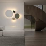Luminária de parede em alumínio no formato de disco com iluminação difusa.
