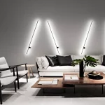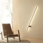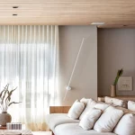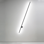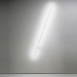 Inspirada na arte minimalista, UM resume-se à relação entre dois elementos geométricos básicos. composta por um perfil em led fixo a uma base giratória na parede, permite a interação do usuário e propõe diferentes posições de luz. produzida em alumínio, proporciona uma luz indireta e exerce também a função de elemento decorativo na composição do espaço.