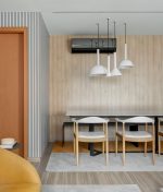 Luminária para iluminação difusa. Corpo em alumínio suspensa por cabo elétrico revestida de tecido